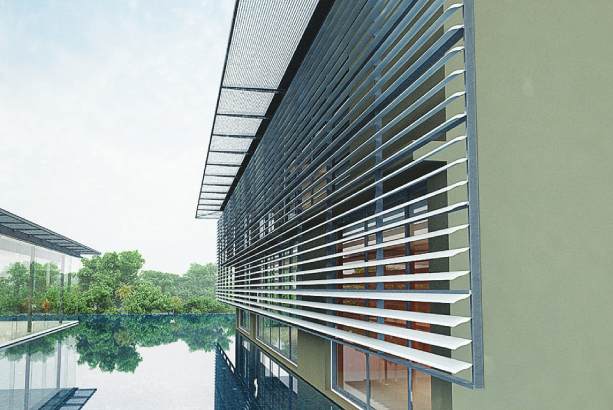 Hệ chắn nắng Basi Leaves - Sun Louver là hệ chắn nắng mặt đứng lắp cố định, sản phẩm tùy thuộc hướng nắng và góc chắn nắng các nhà thiết kế sẽ đưa ra giải pháp phù hợp với nhu cầu sử dụng, sản phẩm được liên kết với hệ khung, tay đỡ và phụ kiện đồng bộ, bề mặt được phủ Sơn tĩnh điện, Sơn PVDF với nhiều mầu sắc đa dạng, sản phẩm mang tính hiện đại và tính thẩm mỹ rất cao.