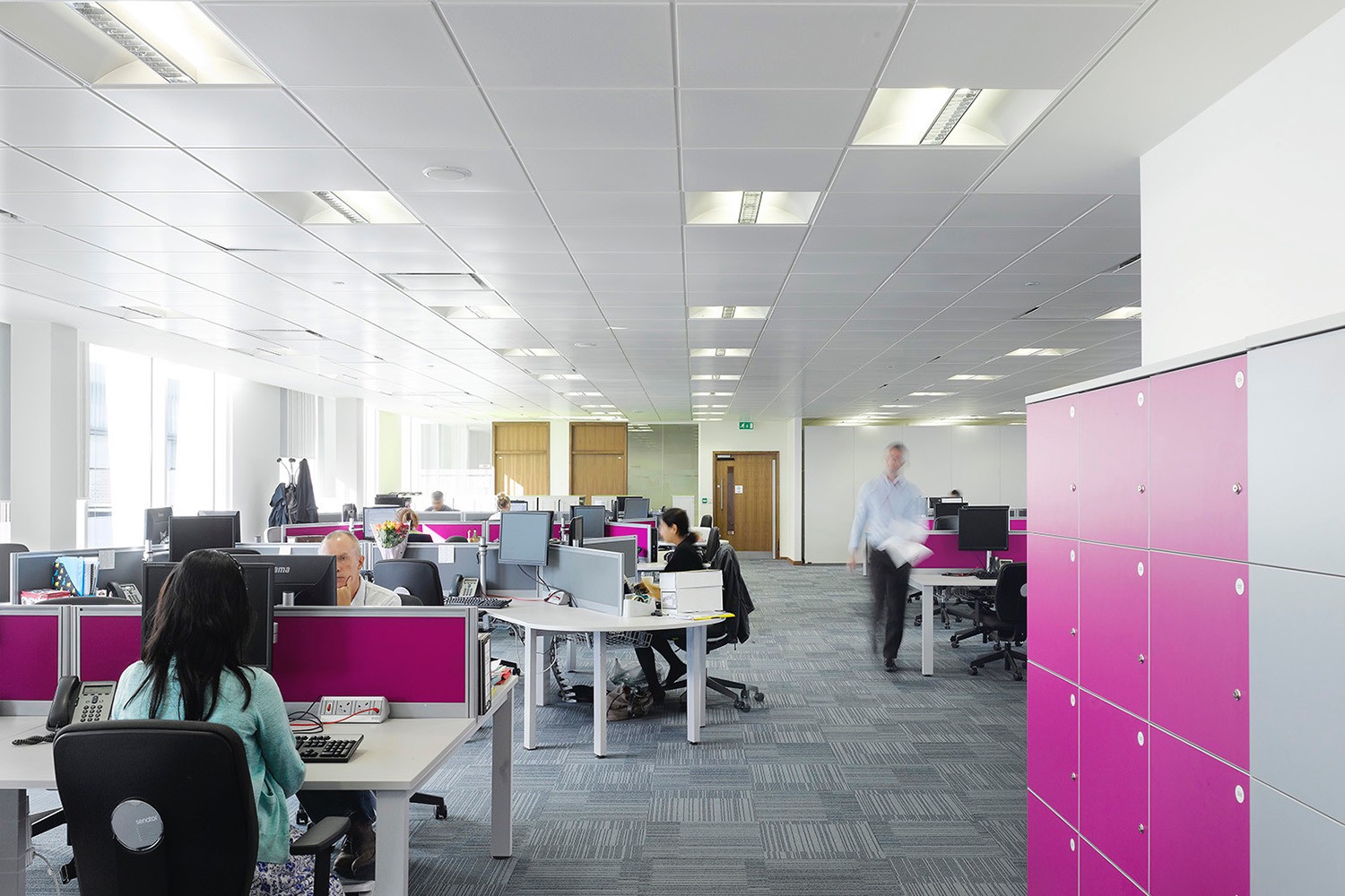 Sử dụng hệ thống treo lộ khung, trần nhôm BASI Lay-in T-Shaped cho cảm quan về mảng trần hình khối gọn gàng.